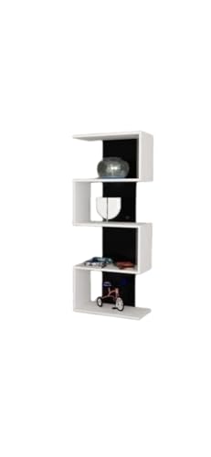 Generic - رف حائط عصري متعرج، أبيض وأسود، 4 مستويات، تصميم هندسي، وحدة تخزين وعرض