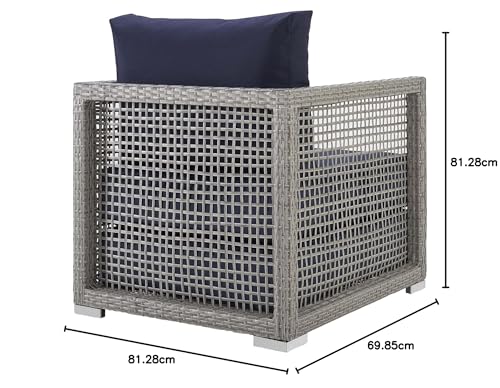 Modway - كرسي اورا بذراعين من الراتان الصناعي من مودواي مع مخدات بلون كحلي ورمادي، مناسب للاستخدام الخارجي
