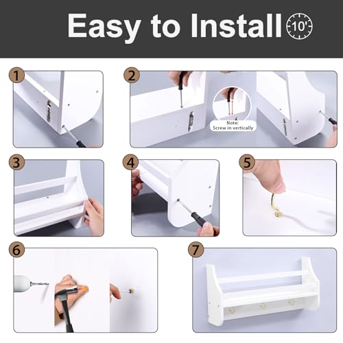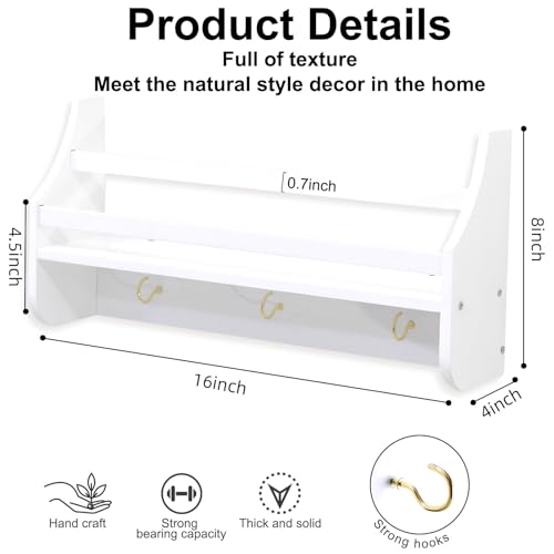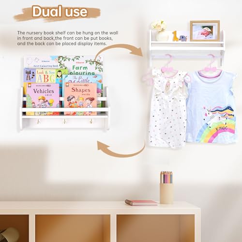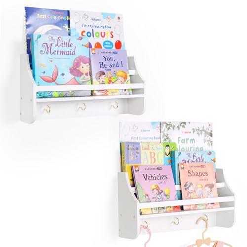 MOFASVIGI - مجموعة رفوف كتب لغرفة الاطفال مكونة من قطعتين رف عائم يثبت على الحائط منظم العاب معلق لتزيين حضانة توابل للمطبخ 16 انش ابيض خشب