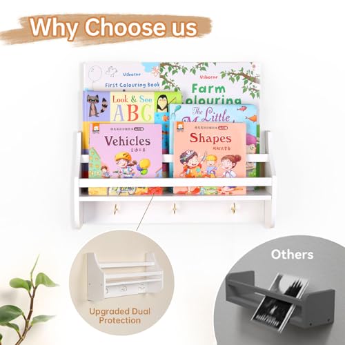 - حماية مزدوجة مطورة: قل وداعًا للأشياء المنزلقة! يستخدم رف كتب الأطفال الخاص بنا للحضانة نظام حاجز حماية مزدوج متطور لتوفير حماية مزدوجة لمنع ألعاب الأطفال والكتب وغيرها من الأشياء من الانزلاق من أرفف الكتب المعلقة على الحائط. مع مجموعة من رفين، يمكنك ترتيب الكتب أو الألعاب حسب الحجم أو وفقًا للعادات الشخصية.