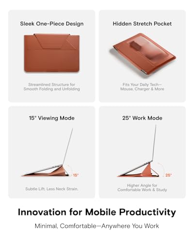 MOFT - MOFT Laptop Carry Sleeve & Invisible Stand, Expandable Storage, Two Adjustable Angles, Ultra-Slim Sytlish Pieces, Sienna Brown, 15-16"
