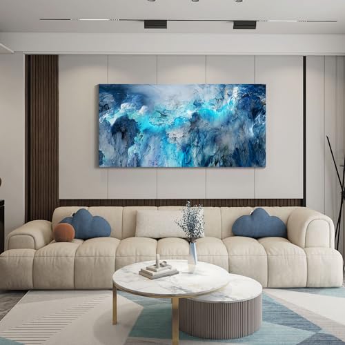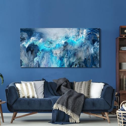 Mofutinpo - Mofutinpo Large Abstract Canvas Art | Modern Contemporary Wall Decor for Living Room, Bedroom, and Office | Serene Blue Abstract Masterpiece | Ready-to-Hang Home Decorations Artwork for Walls 24 ×48in
