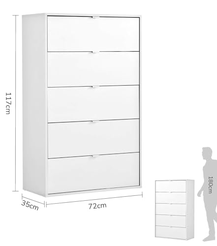 mokebo - mokebo® Chest of Drawers with 5 Drawers in White Wooden 'Die Maßgebende' Sideboard, Highboard, Wooden Sideboard with 72 x 117 x 35 cm (W x H x D), Bedside Table, Drawer Cabinet for Bedroom, Hallway