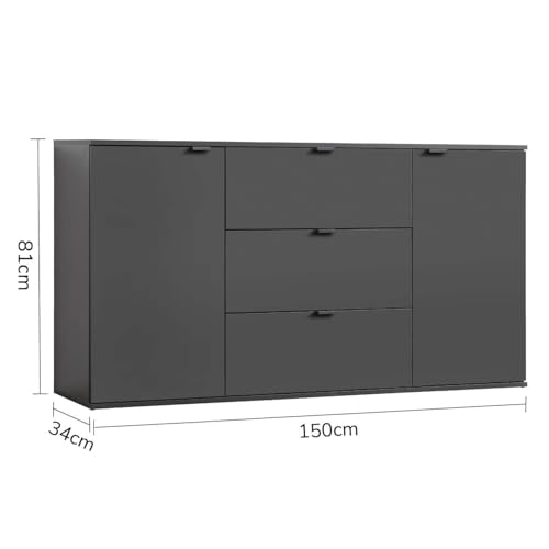 mokebo - mokebo® Sideboard or Chest of Drawers Black Wooden 'Die Elegante', Highboard, TV Cabinet or Modern Drawer Cabinet for Living Room, Bedroom or Hallway in 150 x 81 x 34 cm (W x H x D) Anthracite