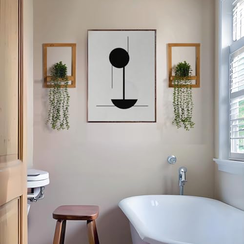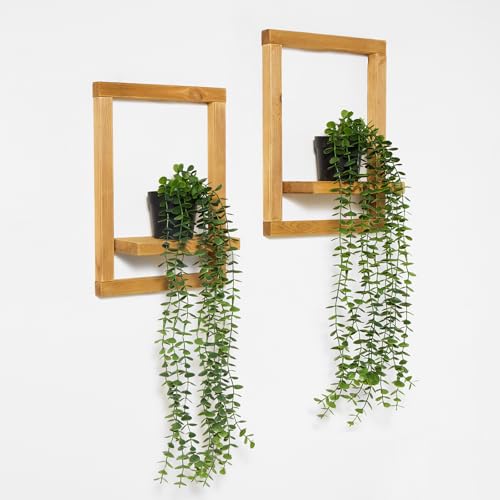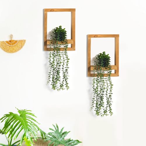 - Wood Shelf & Hanging Plant Set: Includes 2 wooden picture frame shelves and 2 artificial hanging eucalyptus plants with plastic pots, perfect for adding a touch of natural greenery and rustic charm to your living room, bedroom, bathroom or any indoor spaces