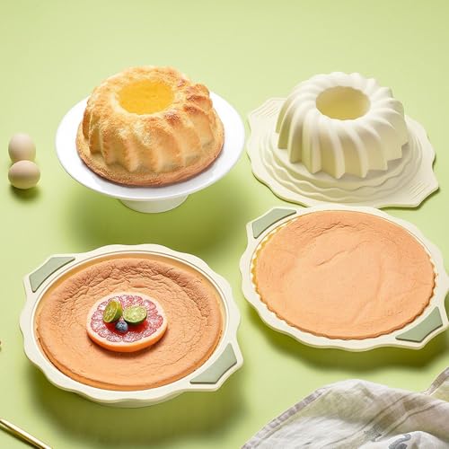 Generic - قالب كيك من السيليكون بجدران مموجة وسطح غير لاصق وقاعدة خفيفة، قالب خبز دائري للخبز والحلويات والآيس كريم والجيلاتين