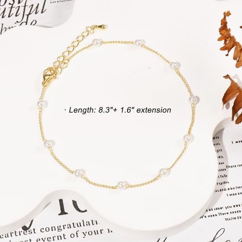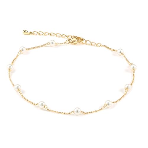 Tavmudar - اساور كاحل للنساء من موليفي، خلخال مطلي بالذهب عيار 14 قيراط، خلخال فضي مقاوم للماء مزين بخرز لؤلؤ وخرز لؤلؤي للتنس وكريستال على شكل قلب كوبا، خلخال مجوهرات انيقة هدية للبنات