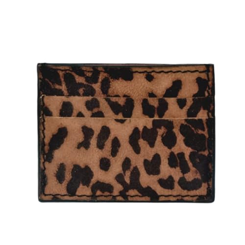 MOLHEM - Genuine Leather Card Holder, Leopard Print Pattern, 5 Card Slots, 8.5 x 10 cm, Handmade