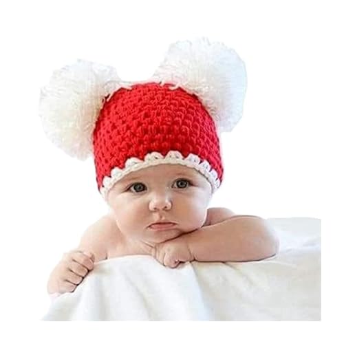 Generic - MOLINO Handmade Crochet Winter Ice Cap with Pom Poms, Red and White, Christmas Holiday Style