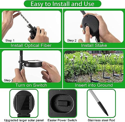 - سهلة التركيب بدون كابلات: لا تحتاج إلى كابلات أو طاقة أو أدوات، هذه المصابيح الشمسية فايرفلاي سهلة التجميع. حرك المفتاح إلى "التشغيل" ثم أدخله في المناطق الناعمة. يتم شحن البطارية بالكامل بالطاقة الشمسية خلال النهار، وتعمل تلقائيًا عند الغسق وتدوم من 8 إلى 10 ساعات