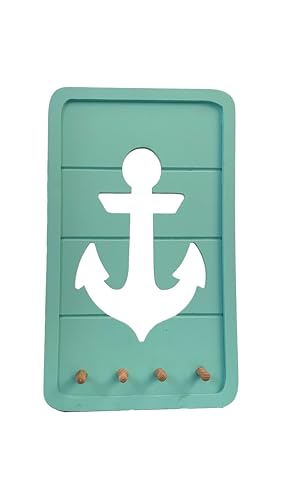 Momentum - Momentum Turquoise wood rectangle shaped wall accessory with anchor engrave