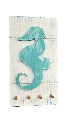 Momentum - Momentum white/turquoise wood Rectangle shaped wall accessory with seahorse shape