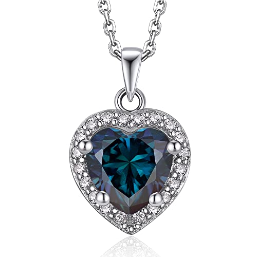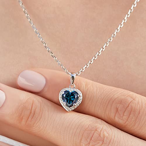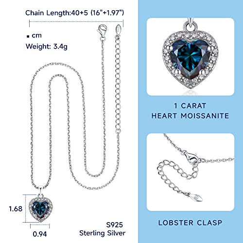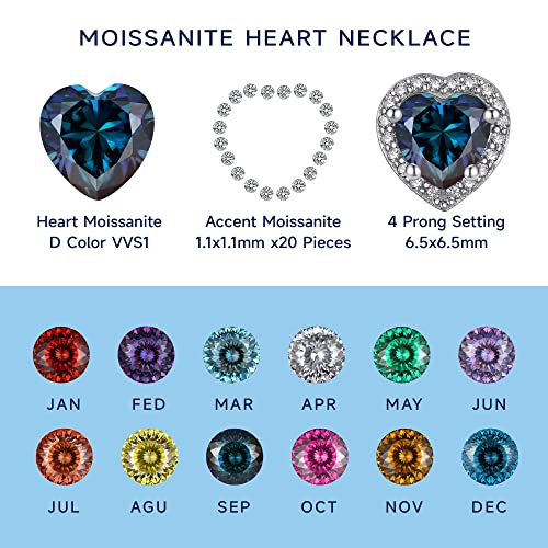 MomentWish - MomentWish Birthstone Pendant for Women, 1Carat Moissanite Heart Necklace for Women, D Color VVS1 Simulated Diamond 925 Sterling Silver Heart of Ocean Necklace-September Birthstone Pendant, Gemstone,