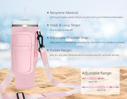 - 【Easy to Carry】This tumbler carrier bag for Stanley cup with adjustable and detachable shoulder strap, it's comfortable & easy to carry. The detachable and adjustable shoulder strap is soft and padded, allowing for easy adjustment between 27.5 in and 50 in to fit most body sizes. You can use it as a shoulder bag, cross-body bags, and handbags on your preference. The cup holder bag for stanley cup adds minimal bulk to your cup, making it easy to carry around wherever you go.