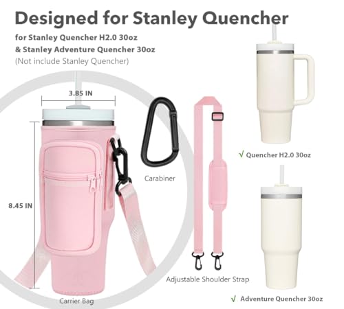 - 【For Stanley 30/40 oz Tumbler with Handle】Perfect cup accessories for 30/40 oz Stanley cup! This tumbler carrier bag with strap is specially designed for 30/40 oz Stanley tumbler with handle. Perfect fit for Stanley cups. It provides a snug fit & features fine stitching, making your cup even more stylish. It is an essential accessory for Stanley cup enthusiasts.