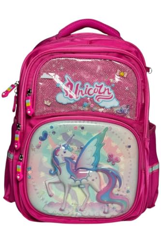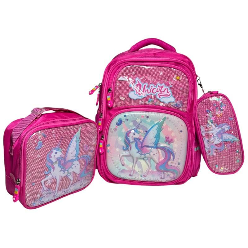Qshop - مجموعة شنطة Momolly 3D ظهر مدرسية 3 قطع مقاس 16 بوصة ، طقم شنطة ظهر+ لانش باج + مقلمة ، للمدرسة والسفر والأنشطة الخارجية - ابعاد (40*28*17) (Pink 6)