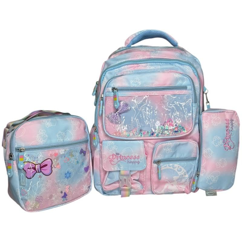 Qshop - مجموعة شنطة Momolly ظهر مدرسية 3 قطع مقاس 16 بوصة ، طقم شنطة ظهر+ لانش باج + مقلمة ، للمدرسة والسفر والأنشطة الخارجية -ابعاد (43*30*19) (Colorful-14)
