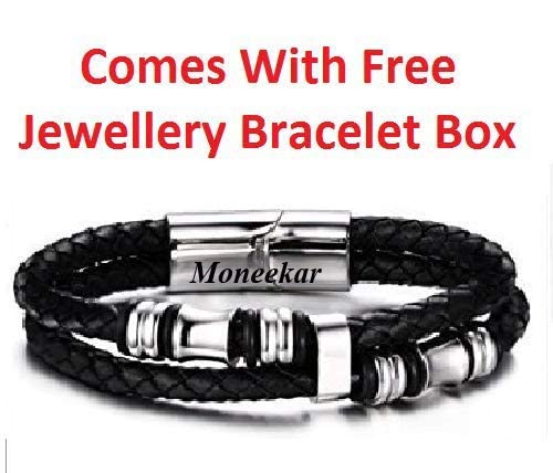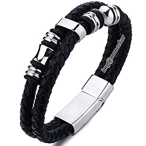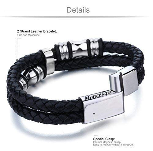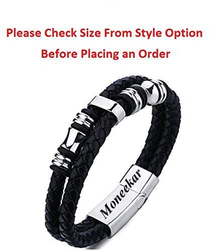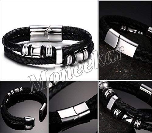 Moneekar - سوار ستانلس ستيل وجلد من مونيكار جويلز للاولاد والرجال, 8 inches