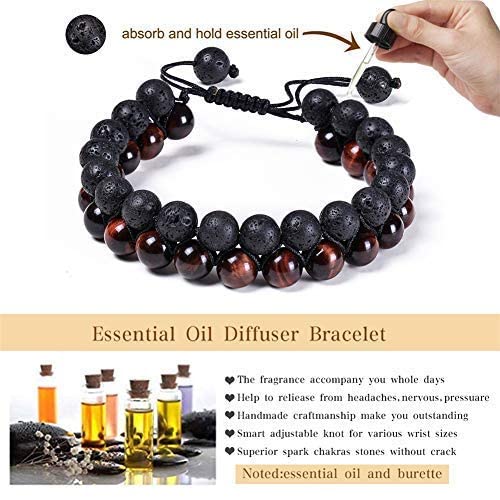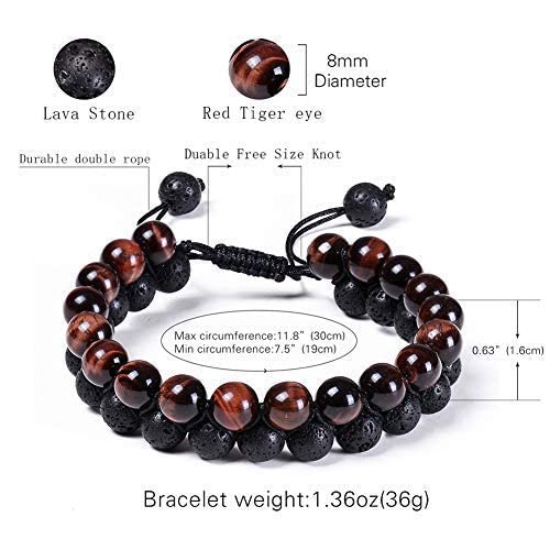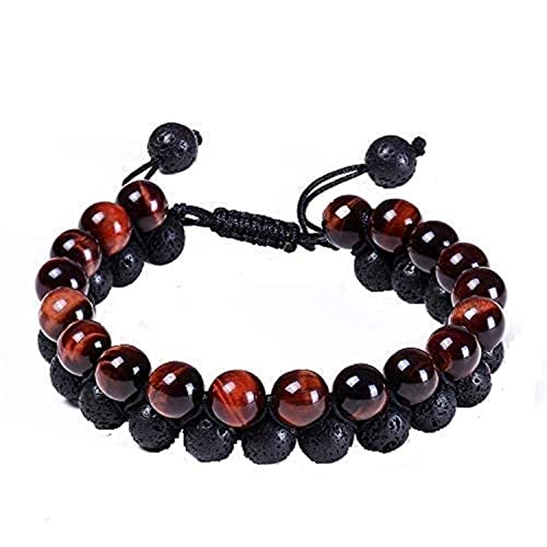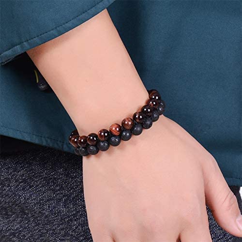 Moneekar - Moneekar Jewels Leather Tiger Eye & Lava Rock Healing Bracelet For Men & Boys, 7.5 inches, Metal, Onyx