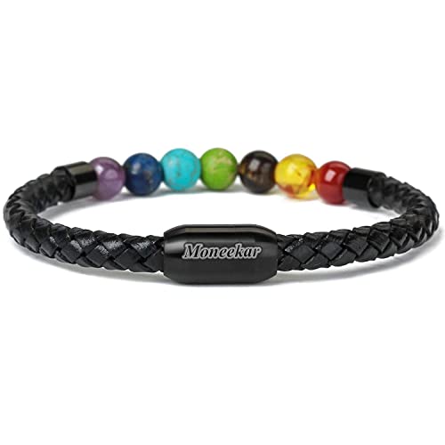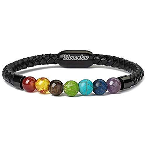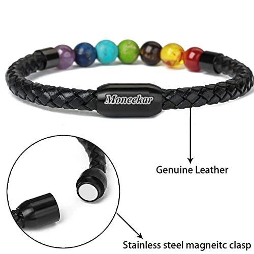 Moneekar - Moneekar Jewels Leather Tiger Eye & Lava Rock Healing Bracelet For Men & Boys, 8.5 inches, Leather, Agate