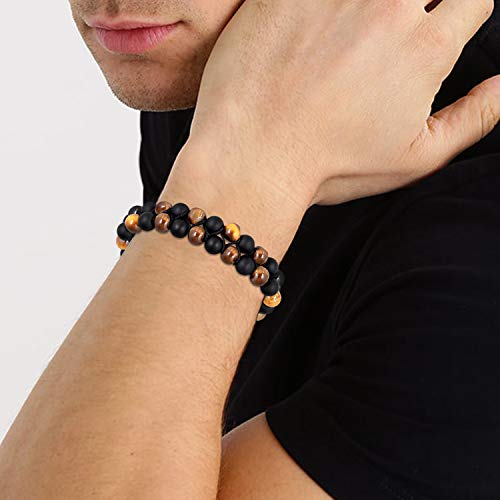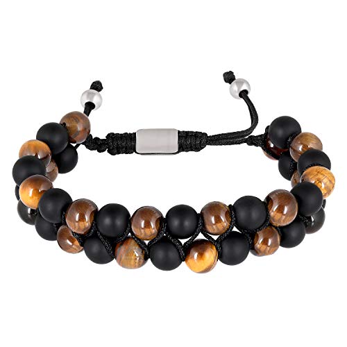 generic - Moneekar Jewels Leather Tiger Eye & Lava Rock Healing Bracelet For Men & Boys, Metal, Onyx