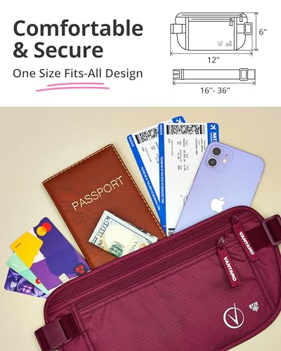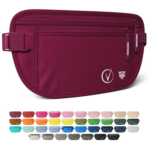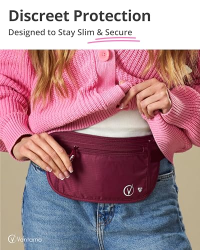 Vantamo - Money Belt for Travel - Security Fanny Pack for Phone, Money, Passport, & More with Anti Theft RFID Protection - Slim Under Clothes Hidden Wallet Holder Bag - Unisex Travel Waist Pouch for Women & Men
