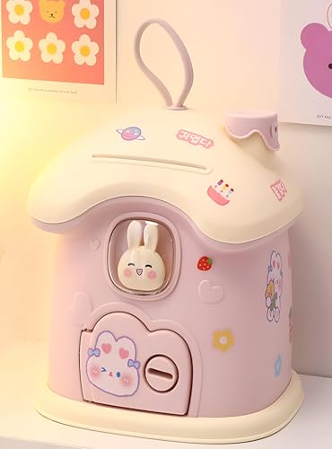 - Designed especially for kids, this large plastic house-shaped box offers a fun and attractive way for kids to store their coins. Its fun design encourages children to pay attention to their savings.