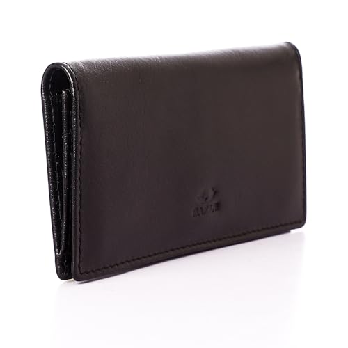 Generic - محفظة نقود صغيرة ورفيعة للنساء SA 301 - حامل بطاقات الائتمان مع عملات معدنية ومحفظة بسوستة منظم كلاتش أسود جلد البقر الطبيعي