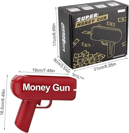 - مسدس رش النقود الممتع: لعبة مسدس المال المثالية للحفلات والمناسبات الخاصة، تضيف جواً من المرح والإثارة لأي تجمع
