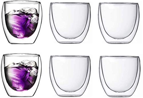 Monico - Monico Set of 6 Double Wall Coffee Mug, Clear Glass Thermal Insulated Cups for Hot or Cold Beverages, Espresso, Coffee, Tea, Cocoa, Latte, Cappuccino - 80ml