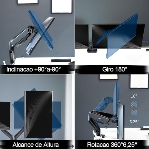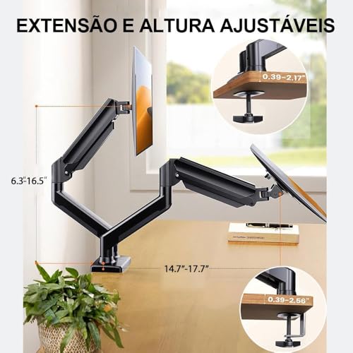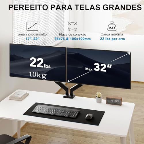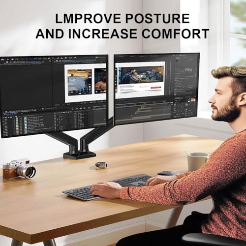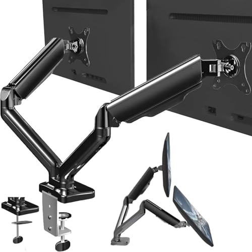 Reamfit - حامل شاشة مكتبي، ذراع هوائي ممتد بارتفاع قابل للتعديل لشاشتين حجم 13-32 بوصة، حامل شاشة مزدوج الذراع