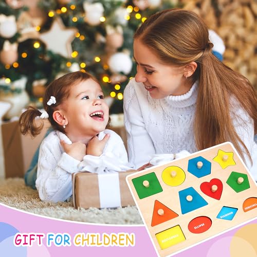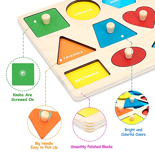Jesustree - Montessori Geometric Shape Wooden Puzzle Peg Board Color Sorter Puzzle with Knob, Toys Interlocking Preschool Educational Gift for 1 2 3 Year Old Children