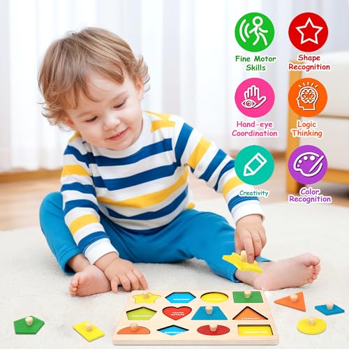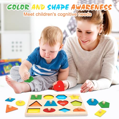 - Educational Toy for Preschool - The child can use the peg puzzles to learn colors, different shapes, develop hand-eye coordination, improve matching skills and fine motor skills, a great choice for 1-2-3 year old kindergarten kids!