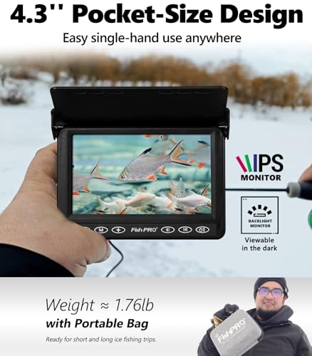 FishPro - Moocor Underwater Fishing Camera, Portable Fish Finder Camera HD 1000 TVL Infrared LED Waterproof Camera with 4.3 Inch LCD Monitor for Ice Lake Sea Boat Kayak Fishing