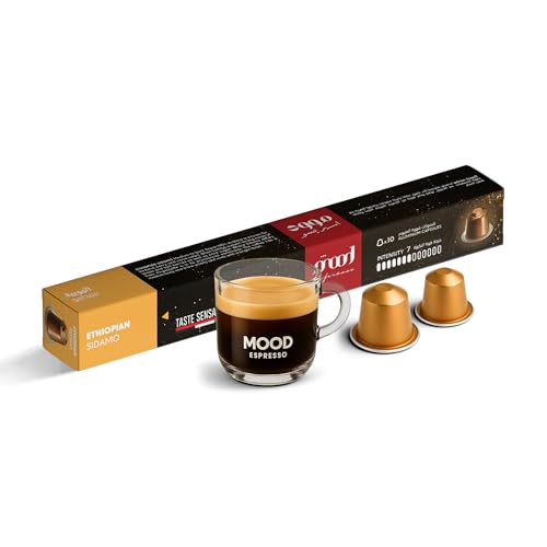 Mood Espresso - كبسولات قهوة سيدامو الاثيوبية محمصة وغامقة من مود اسبريسو، تصميم من الالومنيوم بنكهة الورد