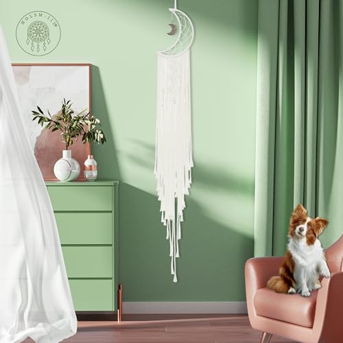 HOLSM-III - Moon Boho Tapestry Wall Hanging, Handmade Wall Tapestry for Bedroom, Bohemian Decor, Macrame Wall Decor, Macrame Wall Hanging, Boho Wall Decor, Boho Room Decor - HOLSM-III (Moon)