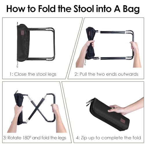 - 【Just Open and Use】The folding stool adopts a brand new design, combining a bag and a stool into one. It can be used after unzipping, without any extra bags taking up space. Fashion and simplicity start from now on.