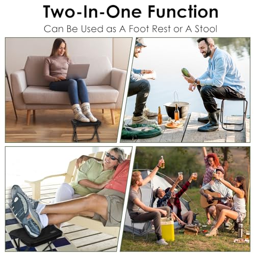 - 【Versatile for Any Occasion】Fold it into a stylish small bag, and unfold it to become a stool or footrest. This portable seating stool is perfect for party, hiking, fishing, camping, and many other occasions, making it an ideal companion for your travels.