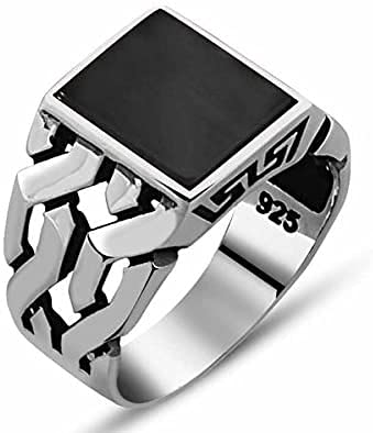 other - Moonstone Ring for Men with Black Lobe - Silver