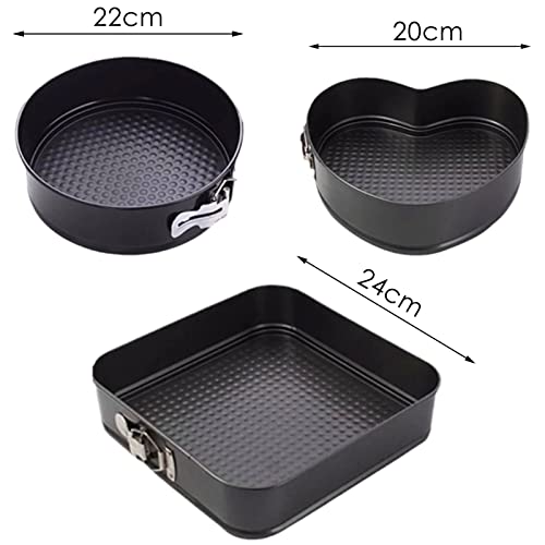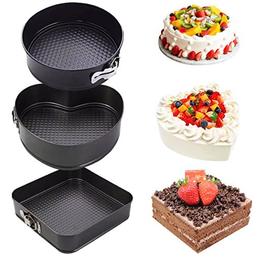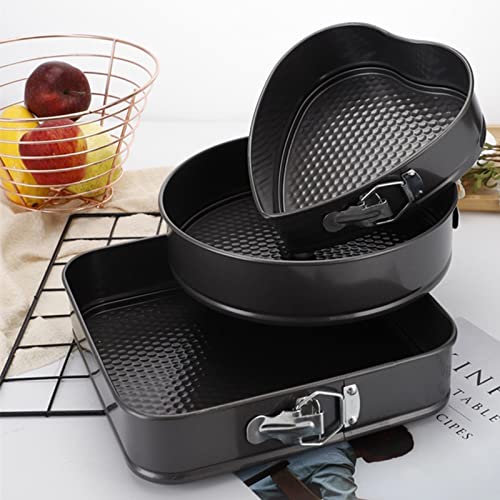 MOONT - قالب كيك قابل للفتح بزنبرك من الصلب الكربوني مع قاعدة قابلة للإزالة من مونت، 3 قوال كيك بتصميم مربع / قلب / دائرة لخبز الكيك، أدوات الخبز والمطبخ