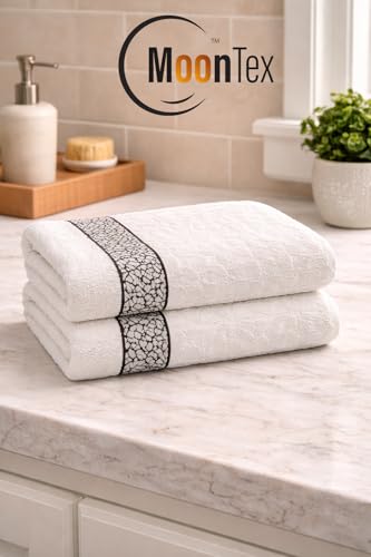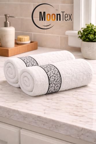 Generic - MoonTex 100% Natural Cotton Towel with Luxury Charm, White, 50 x 90 cm, Multi Use for Face, Hand and Hair