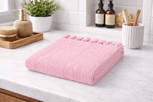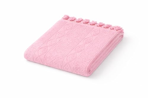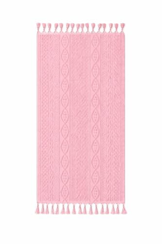 Generic - Moontex 100% Natural Egyptian Cotton Towel, White, 50 x 100 cm, Tassels & Patterns (Pink)