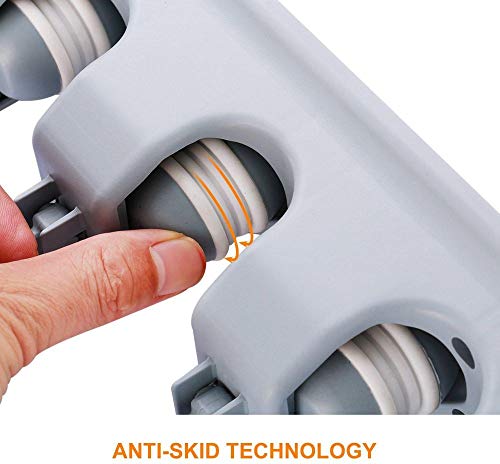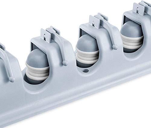 Generic - حامل الممسحة والمكنسة ومنظم ادوات الحديقة، 4 فتحات كروية مثبتة على الحائط مع 5 خطافات، رف تخزين 5643453872، بوليستر، أبيض
