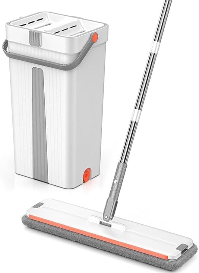 Generic - مجموعة شرشوبة وجردل بعصارة، مساحة موب أرضية مسطحة مع 2 فوط من المايكروفايبر، مساحة مسطحة بدون استخدام اليدين لتنظيف الأرضيات، مجموعة مساحة للنظيف الرطب والجاف لجميع أنواع الأرضيات والنوافذ، متعدد