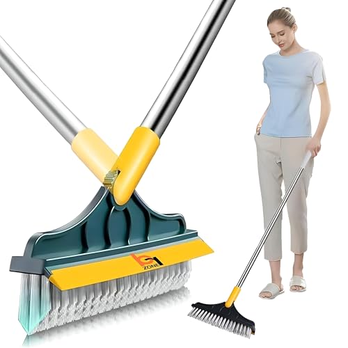 - 2 -in -1 floors brush with a mop: The bathroom cleaning brush comes with a 2 -in 1 function, which is a floors cleaning brush and rubber scraping. Solid hairs are used to brush the bath