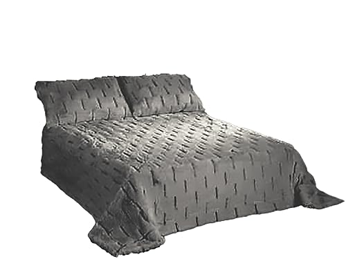 MORA - بطانية فينسون (بطانية فرو ثقيل) - G03 - اللون: رمادي (رمادي) - المقاس: 230 × 250 سم + 2 كيس وسادة (50 × 75) - قماش 100% مايكروفايبر بوليستر - وزن 5.8 كجم - بلد المنشأ إسبانيا من مورا