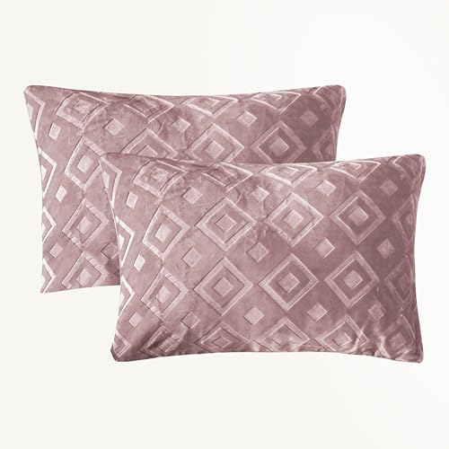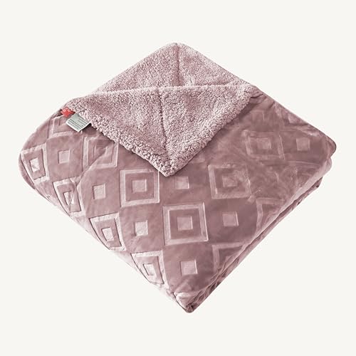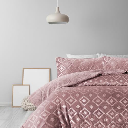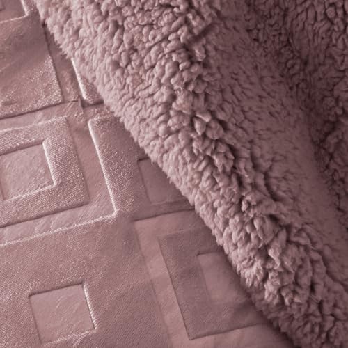 MORANO - Morano 3-Piece Sherpa Blanket Set 230x250cm with 2 Pillowcases 50x70cm Luxurious Soft Embossed Velvet Front and Shaggy Sherpa Back Warm Polyester Blanket for Double Beds (Blush)