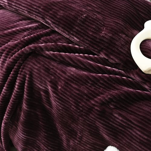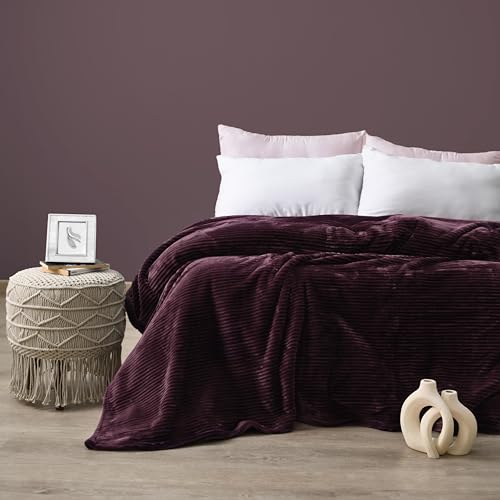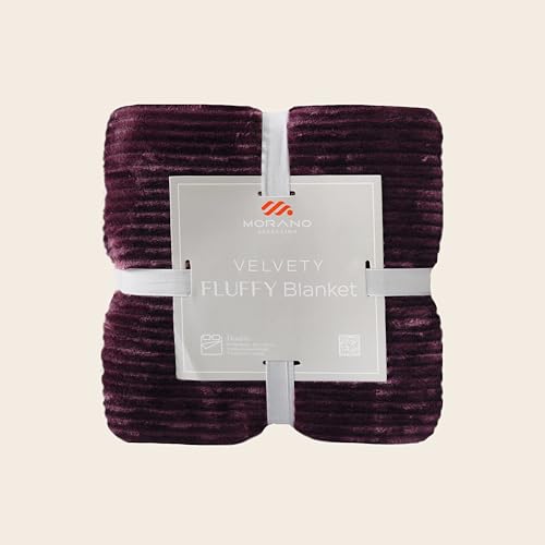 MORANO - Morano Fluffy Blanket Dyed Model 220X240Cm Ultra Soft Polyester Lightweight Cozy Warm Throw Textured Stripe Design Sofa Bed Cover Comfortable Fleece Winter Blanket, for Home and Bedding (Burgundy)
