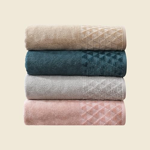 MORANO - Morano Legacy Face Towels Set of 4 100% Cotton Soft Absorbent Bathroom Towels, 50X90 Cm Triangular Design Pattern, Quick Dry Washcloths Premium Fabric Comfortable Face and Hand Towel Set Multi-color