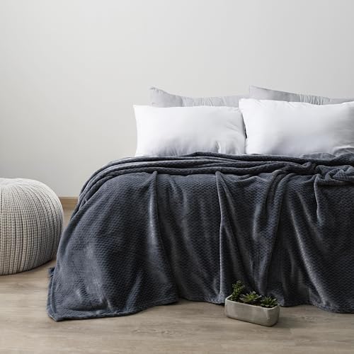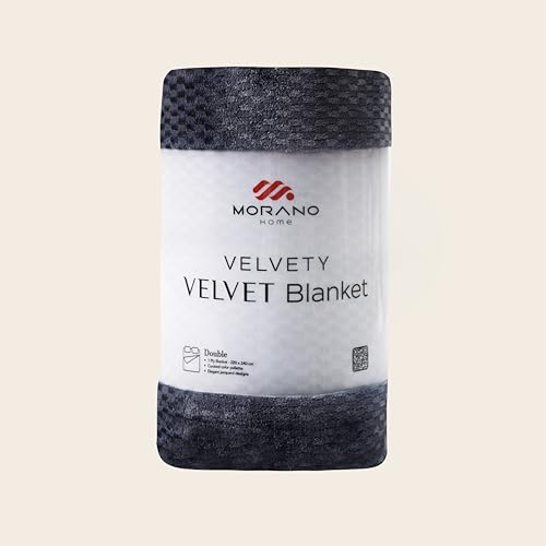 MORANO - بطانية قطيفة موديل مصبوغ من البوليستر الناعم الفاخر دافئة وخفيفة الوزن للسرير أو الكنبة بألوان أنيقة لجميع ديكورات المنزل من مورانو، مقاس 2.20 × 2.40 م (رمادي)